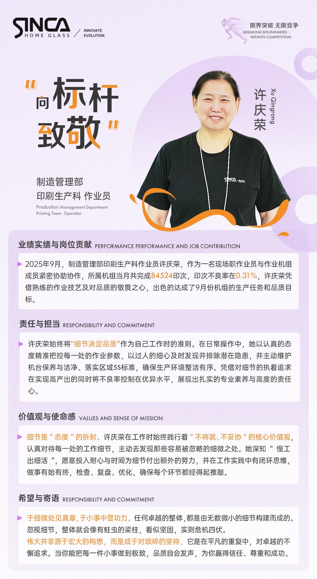 Salute to the Benchmark - Xu Qing Rong, Excellent Employee of September 2025